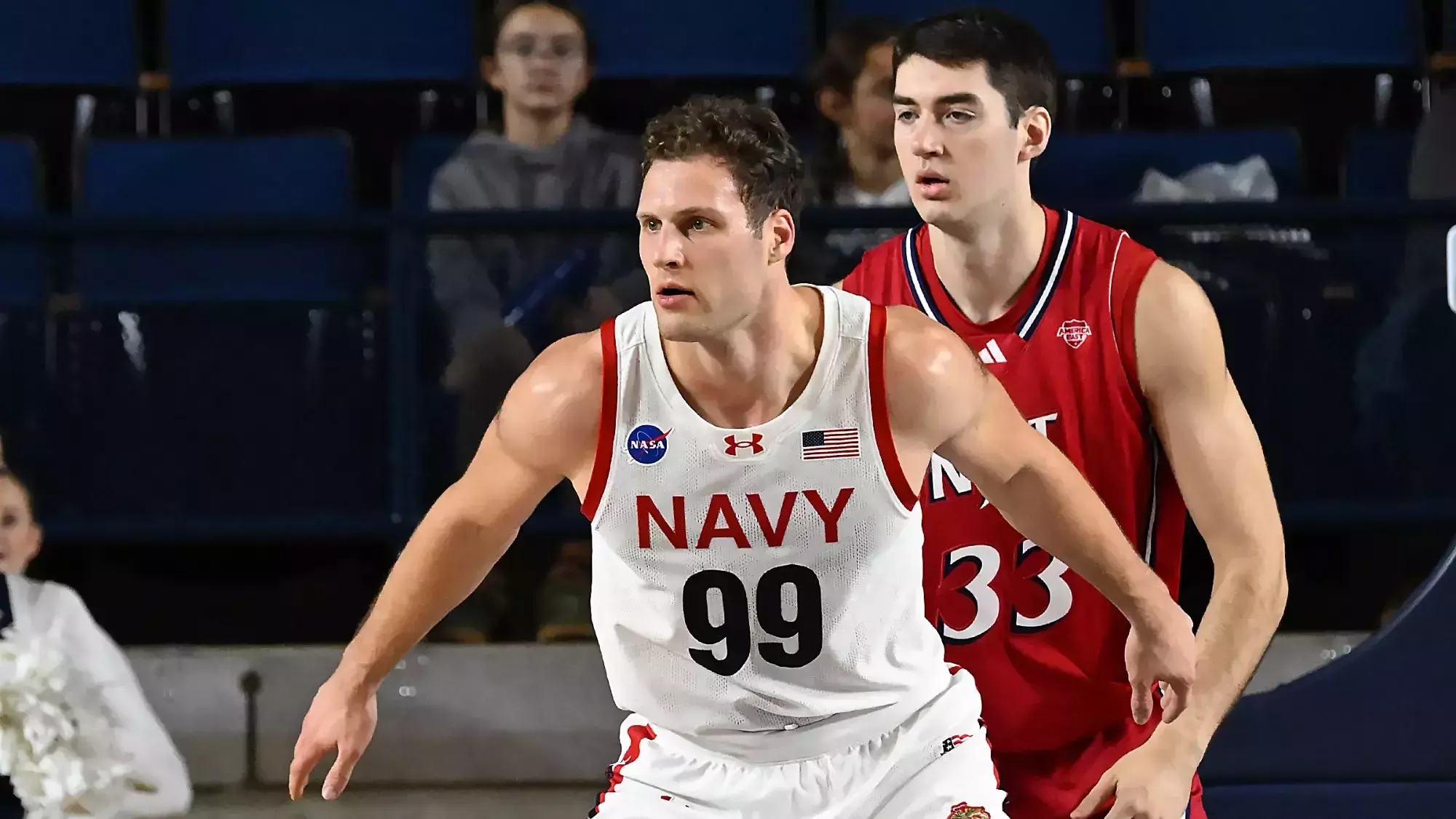 Senior guard Austin Benigni has had an outstanding at the Naval Academy. The preseason Player of the Year in Patriot League would like nothing more than to get the Midshipmen back to NCAA Tournament for the first time since 1998. To do that, Navy will need Aidan Kehoe (pictured above) to continue to be a force up front. It’s hard to tab the top rebounder in the league as a ‘lesser-known guy’ but the 6-foot-11 senior has been so good this season that he deserves some recognition -- and a few votes for POY in the Patriot. The New Jersey native averages a double-double with 15 points and 10.6 rebounds and he’s been even better lately. It’s that time of year when seniors can see that finish line and Kehoe has his eyes on the prize. Less than two weeks ago, he played all but 59 seconds of a double overtime win at Lehigh and finished with 21 points and 21 rebounds. For an encore, four days later he dropped a career-high 29 points against Holy Cross. Kehoe has six games with at least 20 points and 10-plus rebounds this season. Aidan Kehoe is the only player in college basketball averaging over 15 points, over 10 rebounds and shooting over 70% from the field (72.6%). He’s the only guy!